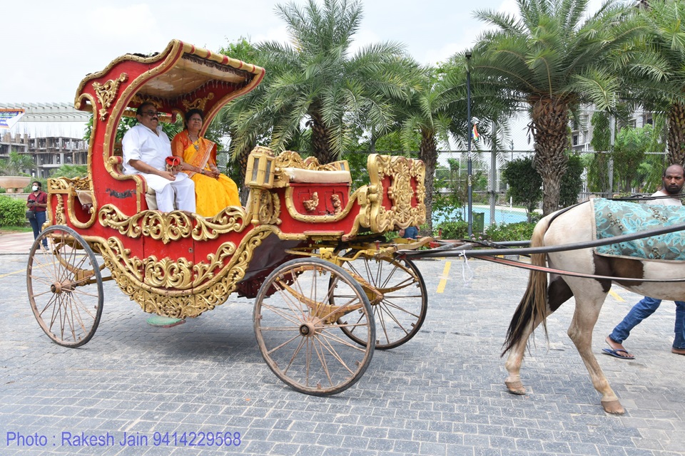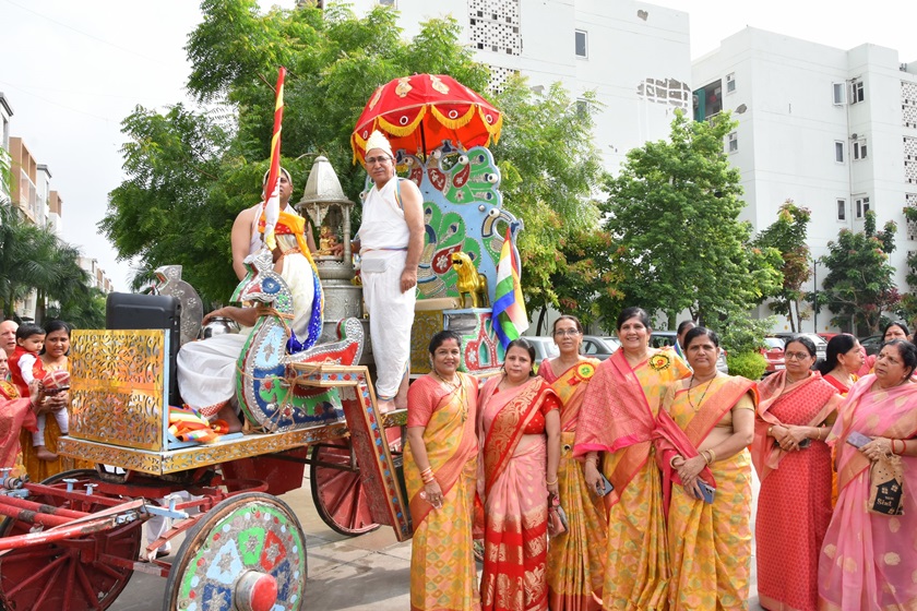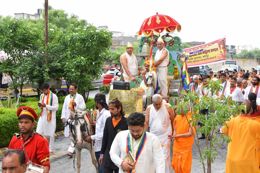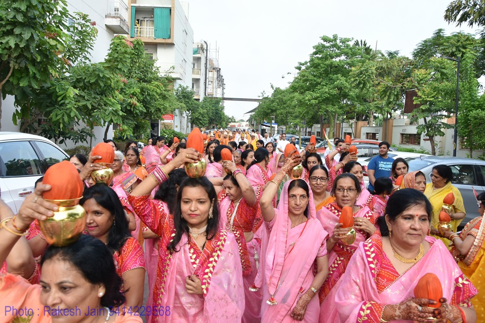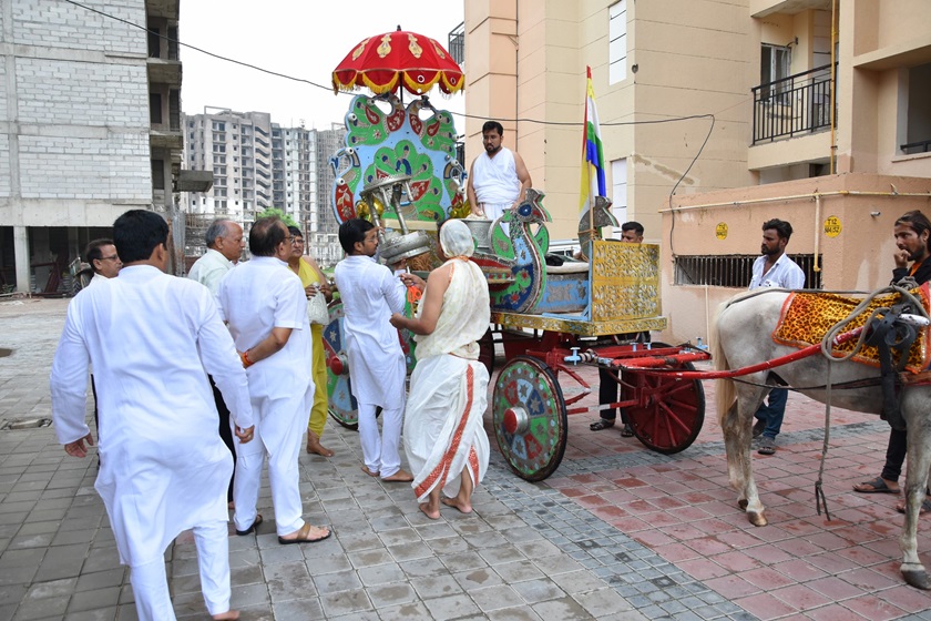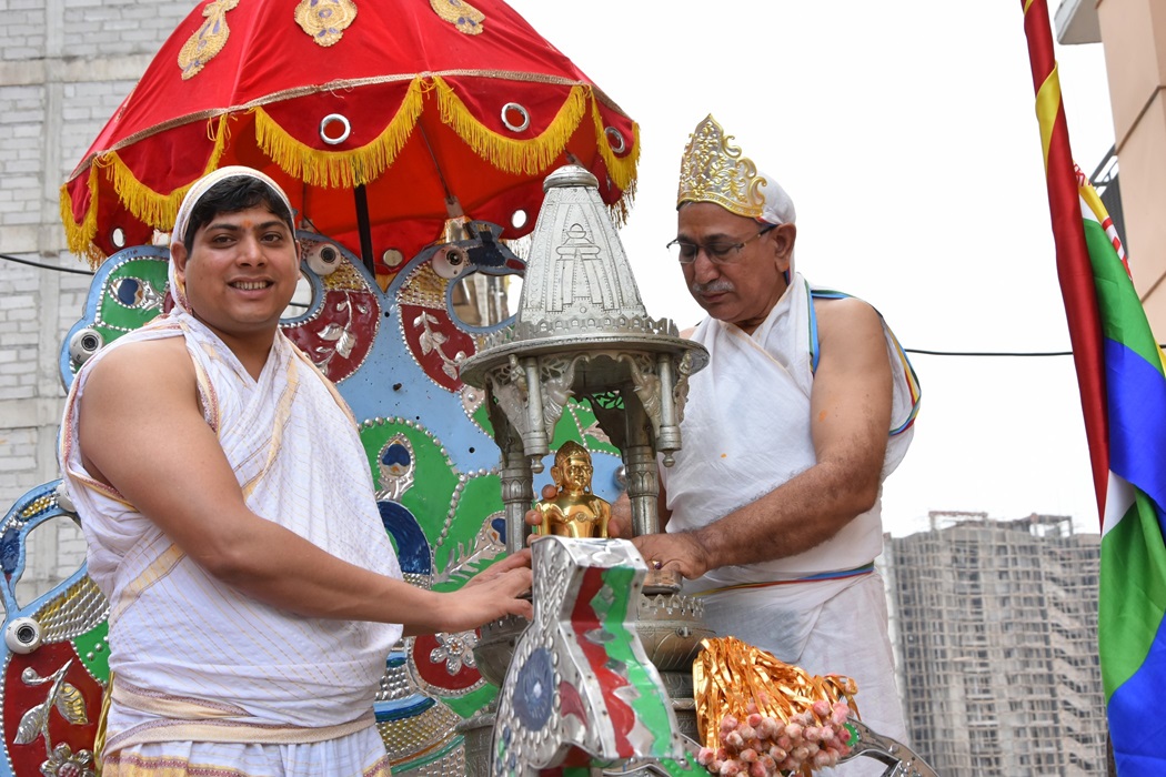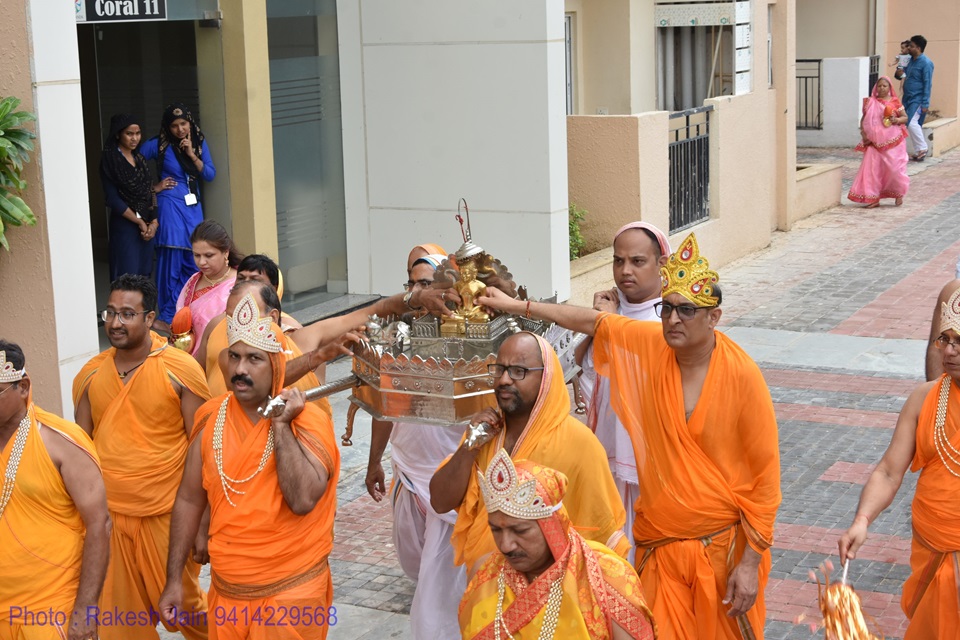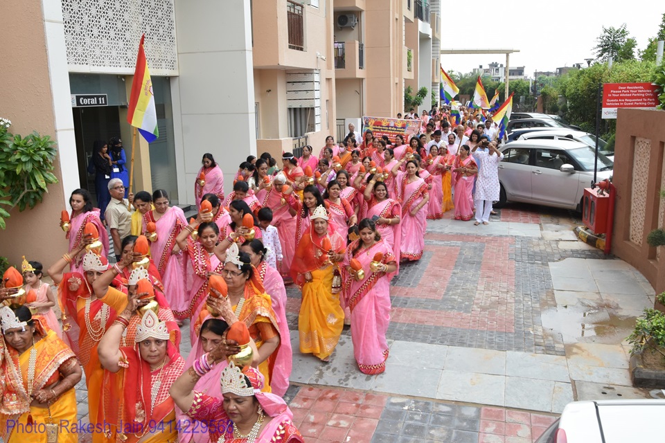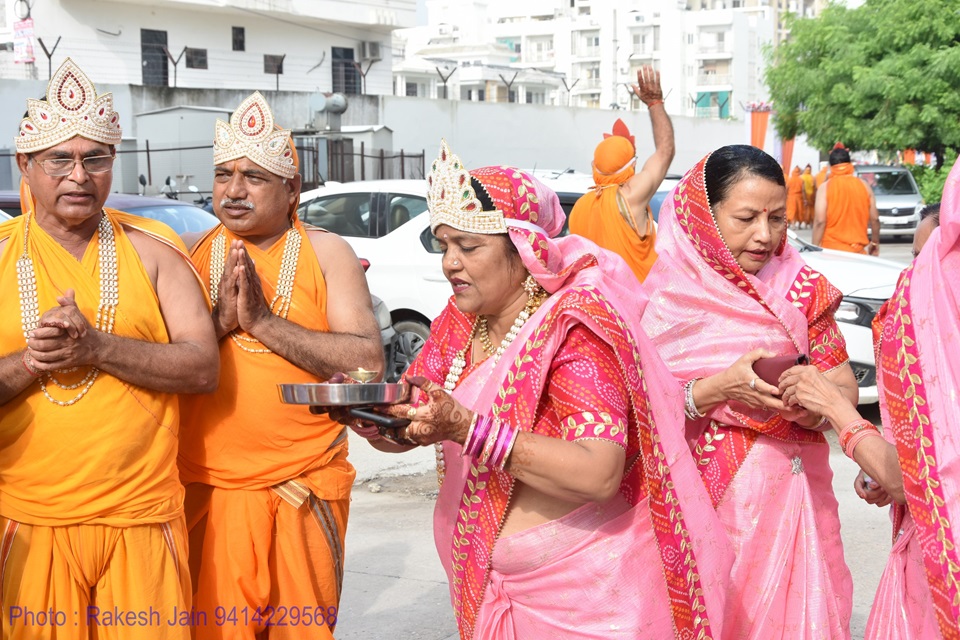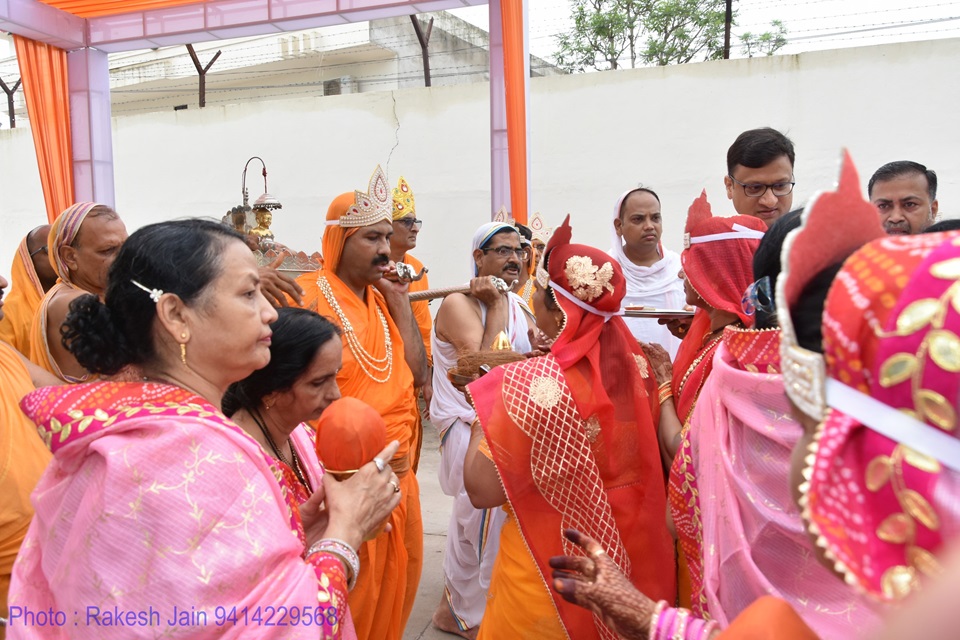 गाजे-बाजे, रथ यात्रा के साथ मूलनायक अतिशयकारी श्री नेमिनाथ भगवान व अन्य प्रतिमाओं के साथ साथ देवी पद्मावती माता की